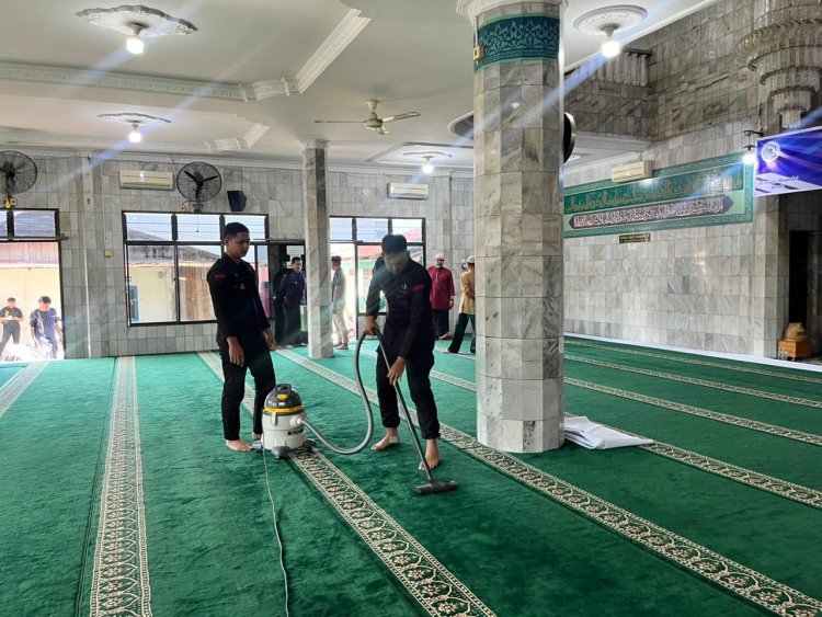 Dansat Brimob Polda Riau Kombes Pol I Ketut Gede Adi Wibawa, S.I.K., menyampaikan hari ini Satuan Brimob Polda Riau melaksanakan kegiatan Bakti Sosial di beberapa tempat ibadah Masjid dan Gereja dengan membersihkan sekelilingnya seperti kamar mandi/ tempat wudhu, keramik teras, dinding, kaca dan pemotongan rumput